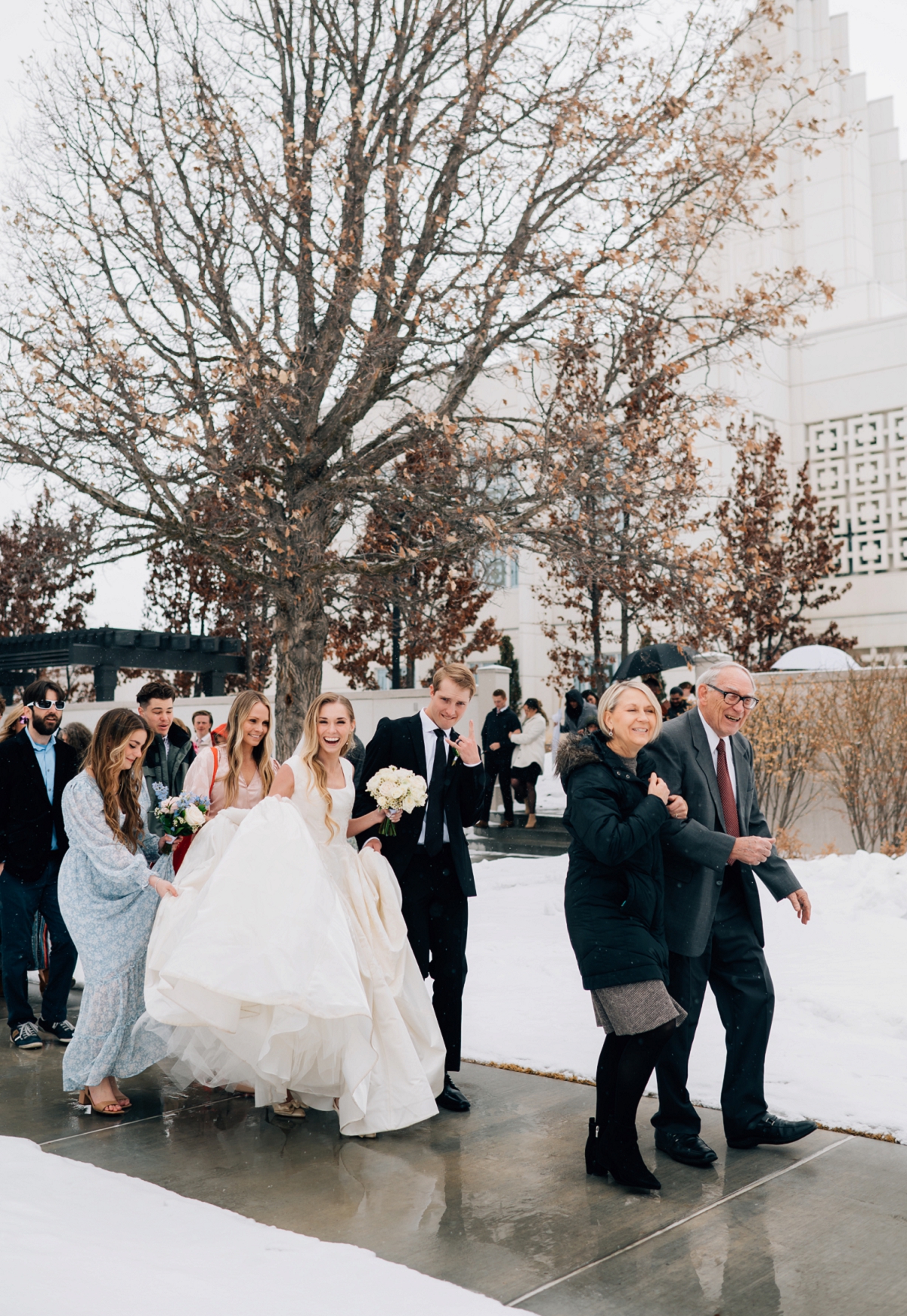 Bailey and Cobe’s wedding day was everything a temple wedding hopes to be — sacred, joyful, simple, and full of love. From snow-kissed temple portraits to laughter-filled toasts and a cozy Brickyard dinner with family, every moment felt intentional and deeply personal. They planned a day that felt like them — peaceful, happy, faith-filled, and surrounded by the people who love them most.