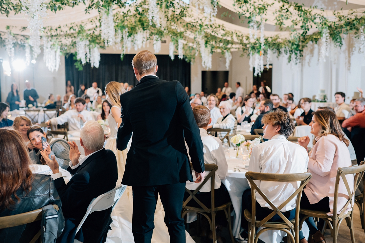 The Brickyard reception felt like stepping into a garden indoors — soft draping, hanging greenery, and candlelit tables filled with people who absolutely adore them. Dinner, laughter, clinking glasses, happy tears… it was everything they dreamed of and just a little bit more.